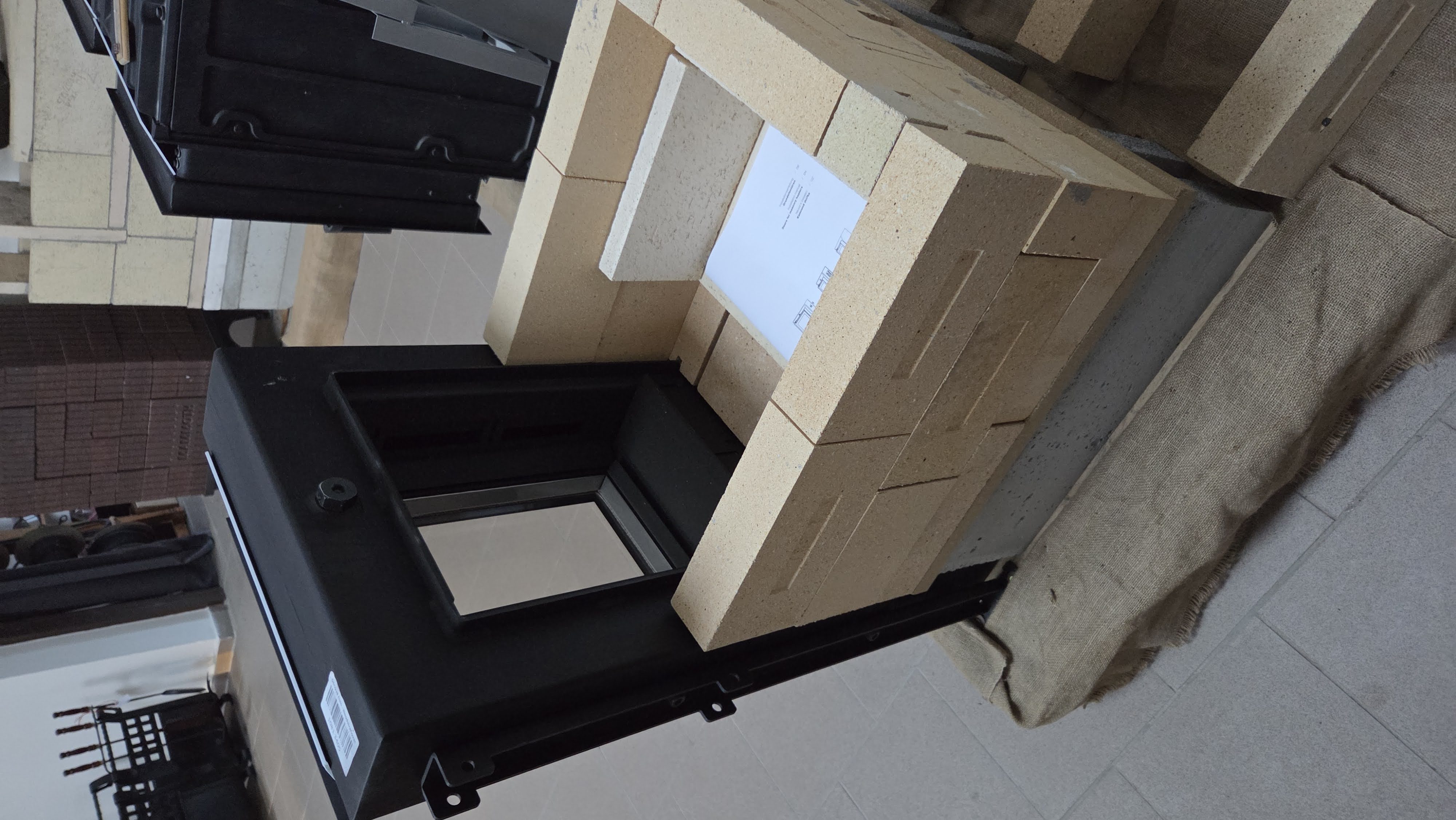 Ohniště se montuje na připravený ocelový korpus s rámem a prosklenými dvířky.