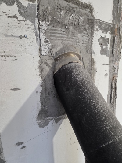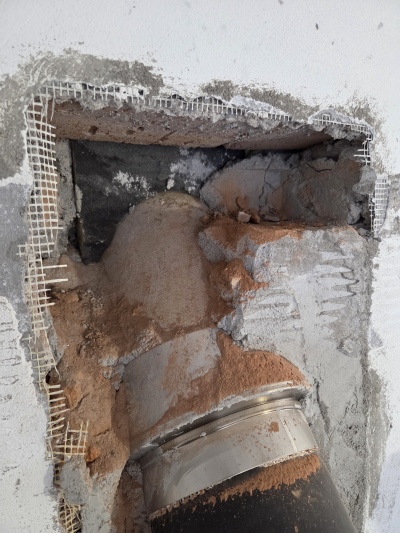 Díky této neznalosti, po napojení kouřovodu od krbové vložky k sopouchu komínu, komínové hrdlo "natvrdo! zazdil k venkovnímu plášti. Bylo spíše zázrakem, že po uvolnění zazděného komínového vstupu nedošlo k upadnutí hrdla a tím ke zničení celého komínu.