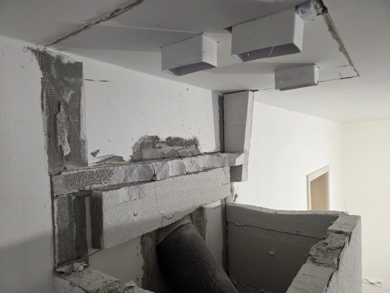 V tomto případě bylo štěstím, že ve vrchní části krbu stavitel krbu vyzdil z ytongu přepážku, která nedovolila odchodu vzduchu k připraveným horkovzdušným rozvodům.